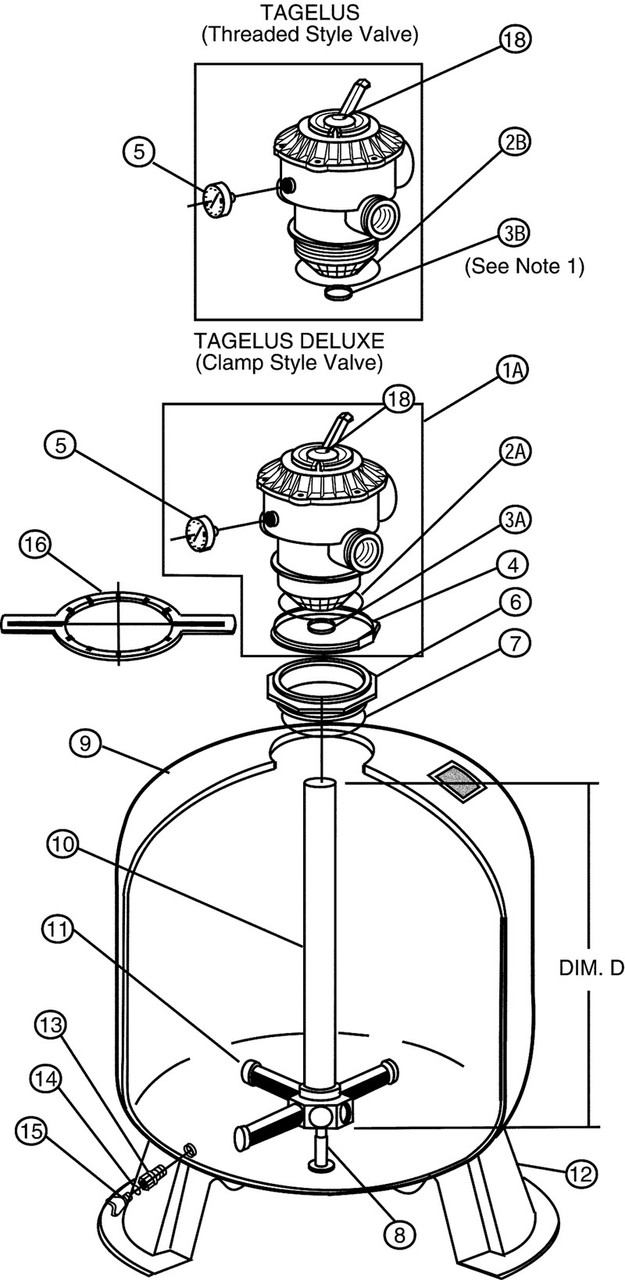 60D Top Mount Sand Filter with 2 Inch Valve; 3.1 SqFt, 60 gpm, 24" Diameter
