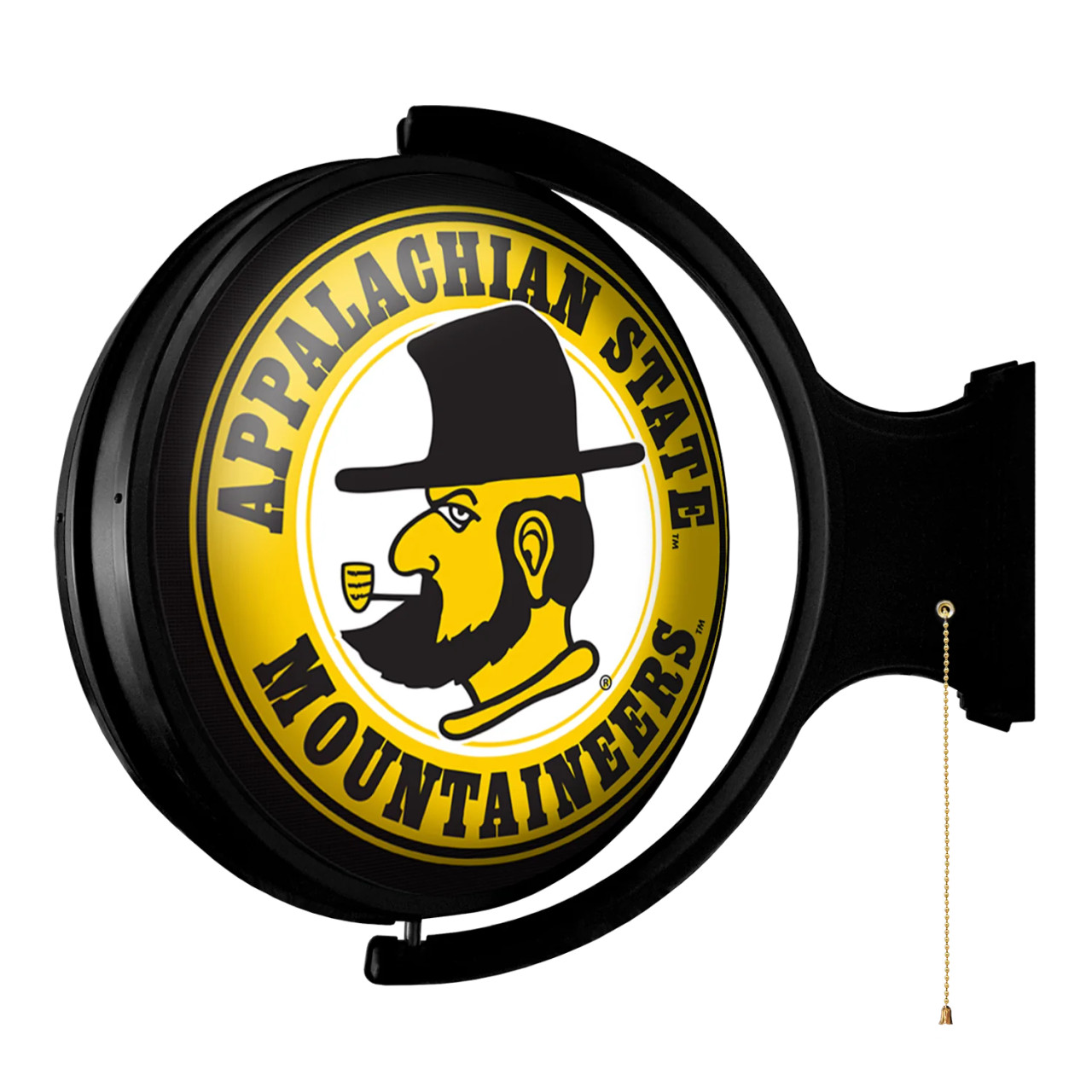 The Original Rotating Lighted Wall Sign both lights up and spins while allowing you to displaying your passion for your team. Whether it's your fan cave, office, game room, or garage, this decorative sign is the perfect addition to any wall. It showcases the latest in LED technology and only uses 12 watts of power. Injection molded, it comes with an 8 foot power cord and a metal pull chain. Mounting hardware included and installation takes no more than 10 minutes. This is an officially licensed product of the Mountaineers and made in the USA.