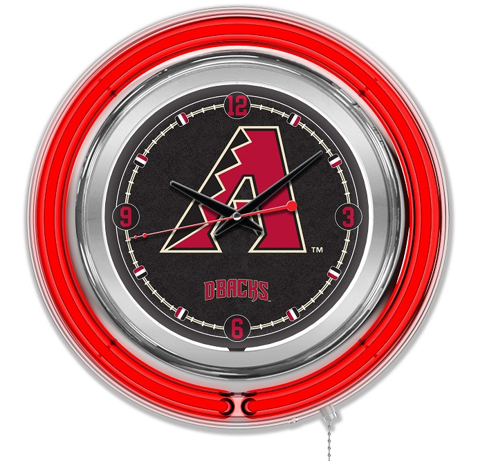 Our double neon MLB Baseball Logo Clocks are the perfect way to show your team pride. Featuring a chrome casing and a team color specific neon outer ring that accents the custom printed clock face which is lit up by an brilliant white, inner neon ring. The Neon rings are easily turned on and off with a pull chain on the bottom of the clock, and are powered by a UL Listed power transformer that runs off standard 120V outlet. Accurate quartz movement ensures proper time and is powered by a single, AA battery (not included). Whether purchasing as a gift for a sports super fan, or for yourself, you can take satisfaction knowing you're buying a clock that is proudly made in Holland, MI USA.