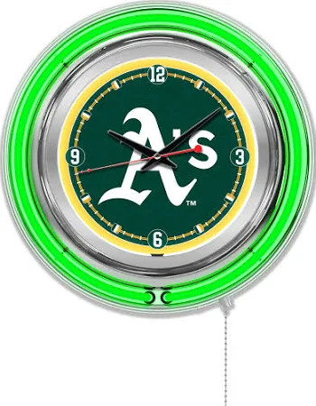 Our double neon MLB Baseball Logo Clocks are the perfect way to show your team pride. Featuring a chrome casing and a team color specific neon outer ring that accents the custom printed clock face which is lit up by an brilliant white, inner neon ring. The Neon rings are easily turned on and off with a pull chain on the bottom of the clock, and are powered by a UL Listed power transformer that runs off standard 120V outlet. Accurate quartz movement ensures proper time and is powered by a single, AA battery (not included). Whether purchasing as a gift for a sports super fan, or for yourself, you can take satisfaction knowing you're buying a clock that is proudly made in Holland, MI USA.