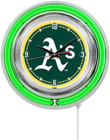 Our double neon MLB Baseball Logo Clocks are the perfect way to show your team pride. Featuring a chrome casing and a team color specific neon outer ring that accents the custom printed clock face which is lit up by a brilliant white, inner neon ring. The Neon rings are easily turned on and off with a pull chain on the bottom of the clock, and are powered by a UL Listed power transformer that runs off standard 120V outlet. Accurate quartz movement ensures proper time and is powered by a single, AA battery (not included). Whether purchasing as a gift for a sports super fan, or for yourself, you can take satisfaction knowing you're buying a clock that is proudly made in Holland, MI USA.