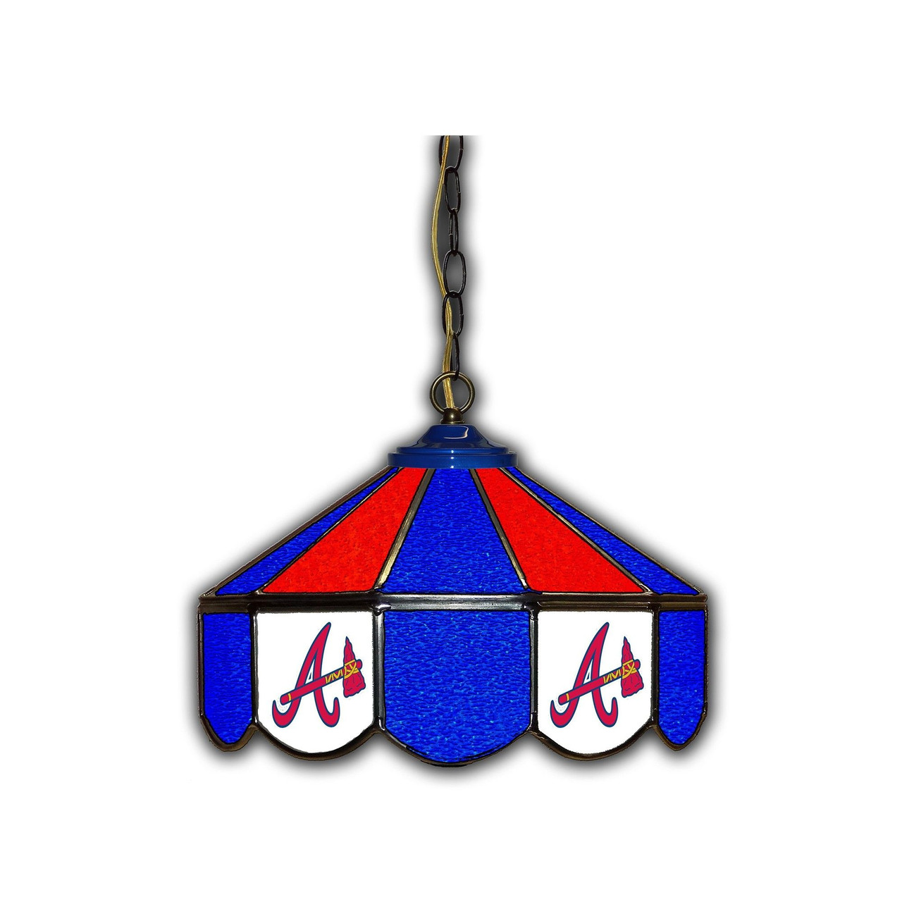 Beautifully handcrafted 14-inch diameter old world Tiffany style stained glass hanging pub light. Each piece of glass is individually cut by hand and individually placed by hand. It is then soldered into its proper position with great care and precision by highly trained artists. Fully wired with 1 UL Approved high quality porcelain light socket and a 12-foot cord with inline switch and polarized plug. 9-feet of heavy duty antique brass chain adds a touch of luxury to the lamp. Handmade in the USA. Chain and ceiling mounting hardware not included. Bulb is not included. Lamp measures 14" wide x 10" high; weighs 12 pounds. Ships small parcel from Illinois. Allow 3-4 weeks for shipping.