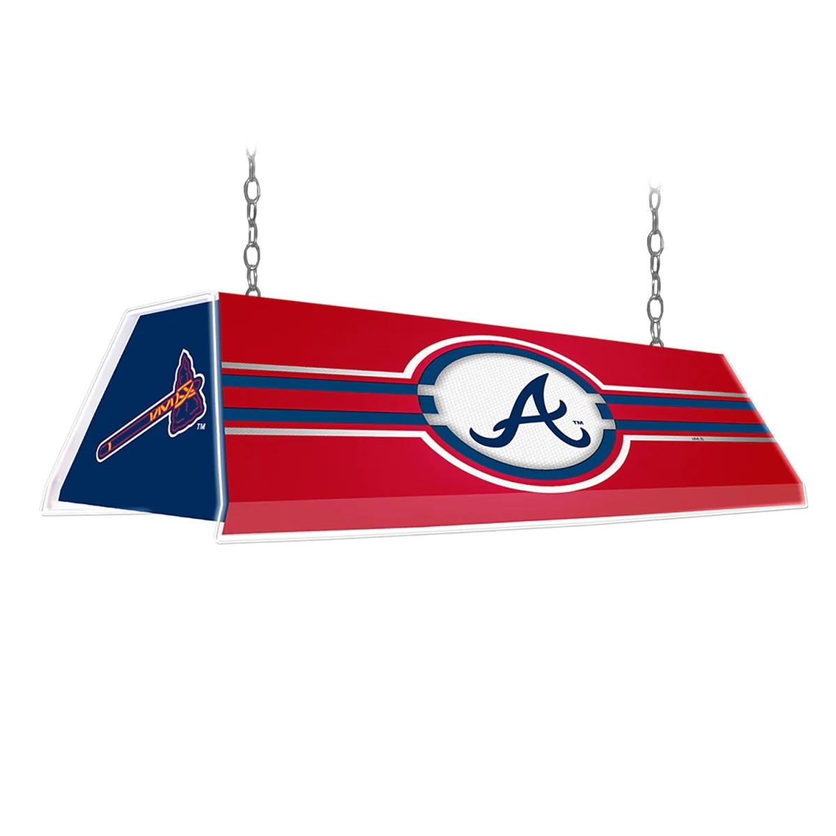Our new Atlanta Braves edge glow pool table light features an ultra-modern design with edge glow corners and a high-resolution, high gloss image. A perfect piece to decorate any fan cave or billiard room, giving it a modern feel. Hanging hardware included. This is an officially licensed product of the Braves and made in the USA.