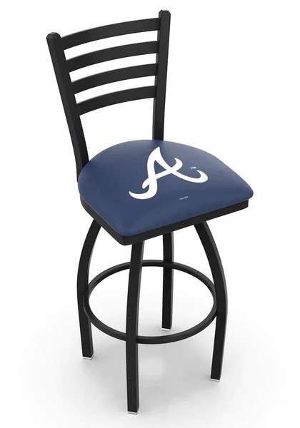 Made for the ultimate MLB sports fan, you will be proud to show where your loyalty lies with this impressive Officially Licensed Major League Baseball stool from the Holland Bar Stool Co. This L014 swivel logo stool has a defined Ladder Back style that doesn't just add comfort, but sophistication. A state of the art print process is used in applying specially formulated UV vinyl ink in numerous stages to produce a sharp, crisp, clear image to ensure a perfect reproduction of the logo. You won't find a higher quality logo stool on the market. The frame is made from commercial quality 16 gauge, 1 1/4 inch tube steel with solid mig welded joints to guarantee strength and durability. The powder coated finish resists chips and scratches and ensures a long-lasting, rich appearance. The cushion seats are of the highest quality as well, utilizing a breathable, commercial grade vinyl. At the heart of the cushion is 2 1/2 inches of highly-dense, US made foam that provides maximum support and will not breakdown in a couple years. If you're going to finish your bar, game room, or man cave do it right- with a logo stool made in the USA by the Holland Bar Stool Co.