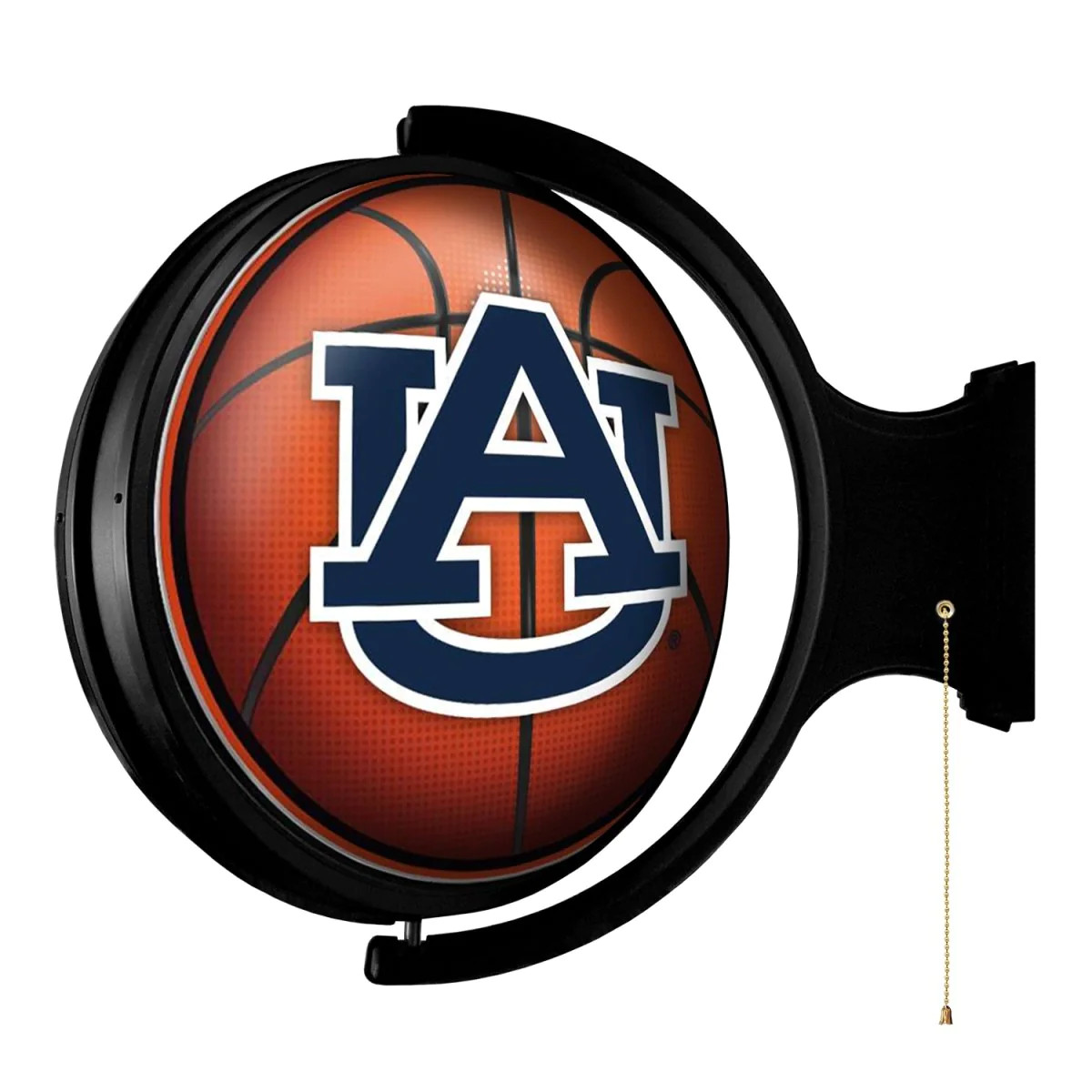 The Original Basketball Rotating Lighted Wall Sign both lights up and spins while allowing you to display your passion for your favorite team. Whether it's your fan cave, office, game room, or garage, this decorative rotating sign is the perfect addition to any wall. It showcases the latest in LED technology and only uses 12 watts of power. Injection molded, it comes with an 8' power cord and a metal pull chain. Mounting hardware included and installation takes no more than 10 minutes. This is an officially licensed product of the NCAA and made in the USA.