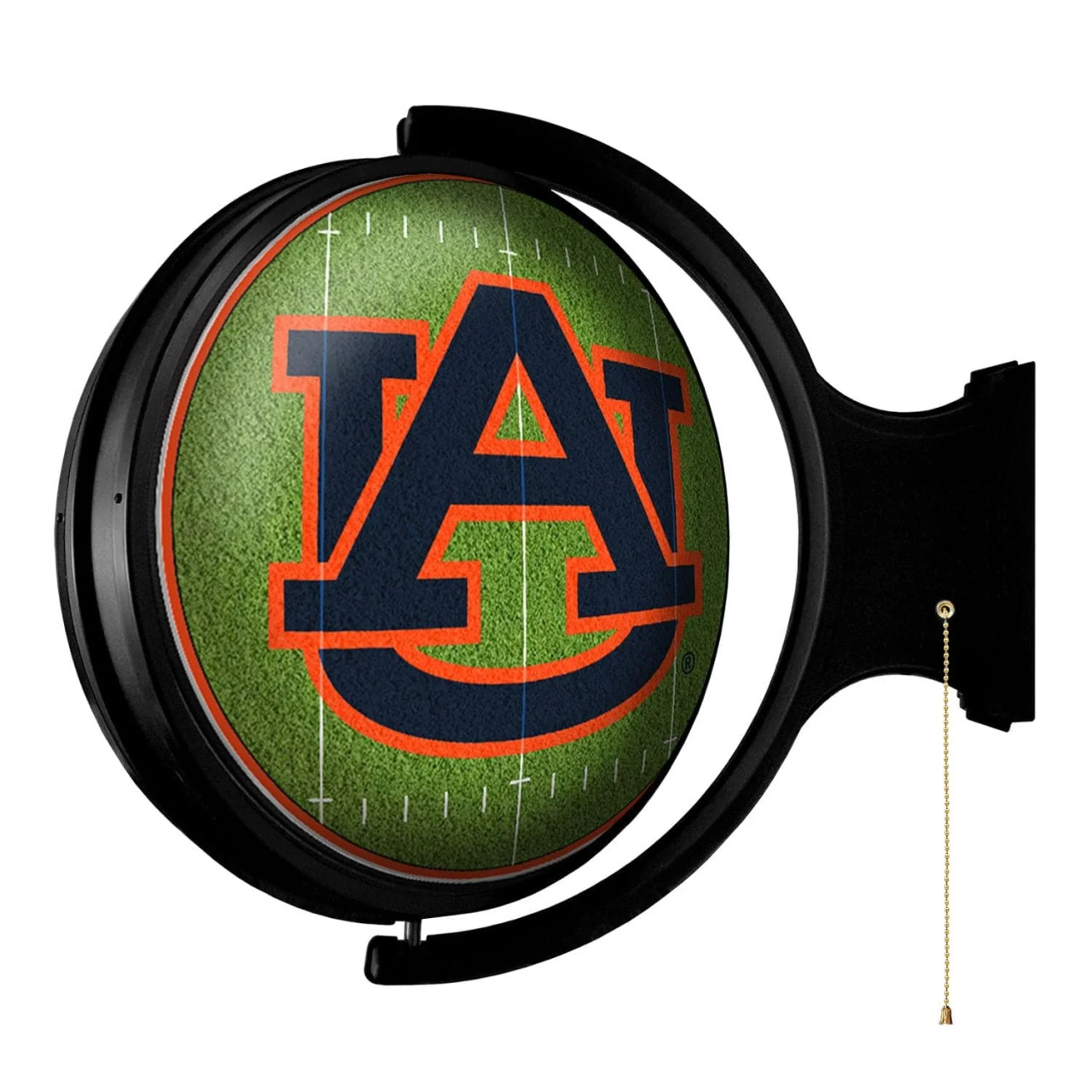 Our Football "On the 50" Rotating Lighted Wall Sign both lights up and spins while allowing you to display your passion for your favorite team. Whether it's your fan cave, office, game room, or garage, this decorative football field design makes a great addition to any wall and is sure to get you ready for gamedays. It showcases the latest in LED technology and only uses 12 watts of power. Injection molded, it comes with an 8 foot power cord and a metal pull chain. Mounting hardware included and installation takes no more than 10 minutes. This is an officially licensed product of the NCAA and is made in the USA.