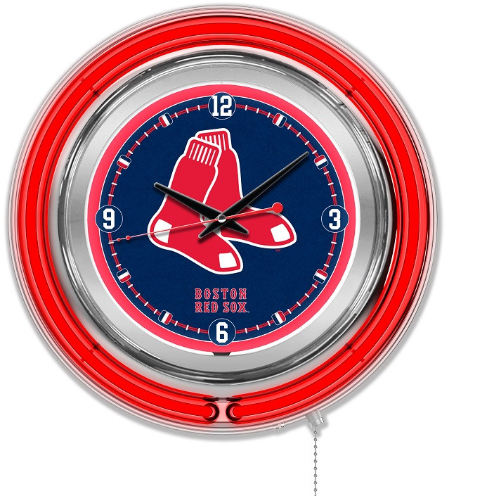 Our double neon MLB Baseball Logo Clocks are the perfect way to show your team pride. Featuring a chrome casing and a team color specific neon outer ring that accents the custom printed clock face which is lit up by an brilliant white, inner neon ring. The Neon rings are easily turned on and off with a pull chain on the bottom of the clock, and are powered by a UL Listed power transformer that runs off standard 120V outlet. Accurate quartz movement ensures proper time and is powered by a single, AA battery (not included). Whether purchasing as a gift for a sports super fan, or for yourself, you can take satisfaction knowing you're buying a clock that is proudly made in Holland, MI USA.