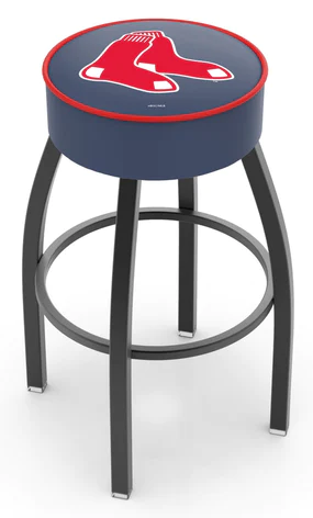 Made for the ultimate MLB sports fan, you will be proud to show where your baseball team loyalty lies with this impressive Officially Licensed stool from the Holland Bar Stool Co. This contemporary L8B1 stool features a single ring black wrinkle base with a 5" scooped cushion that conceals the swivel for an exceptionally clean look. A state-of-the-art print process is used in applying specially formulated UV vinyl ink in numerous stages to produce a sharp, crisp, clear image to ensure a perfect reproduction of the logo. You won't find a higher quality logo stool on the market. The frame is made from commercial quality 16 gauge, 1 1/4 inch tube steel with solid mig welded joints to guarantee strength and durability. The powder coated finish resists chips and scratches and ensures a long-lasting, rich appearance. The cushion seats are of the highest quality as well, utilizing a breathable, commercial grade vinyl. At the heart of the cushion is high density, US made foam, that provides maximum support and will not breakdown in a couple years. If you're going to finish your bar, game room, or man cave do it right- with a major league logo stool made in the USA by the Holland Bar Stool Co.