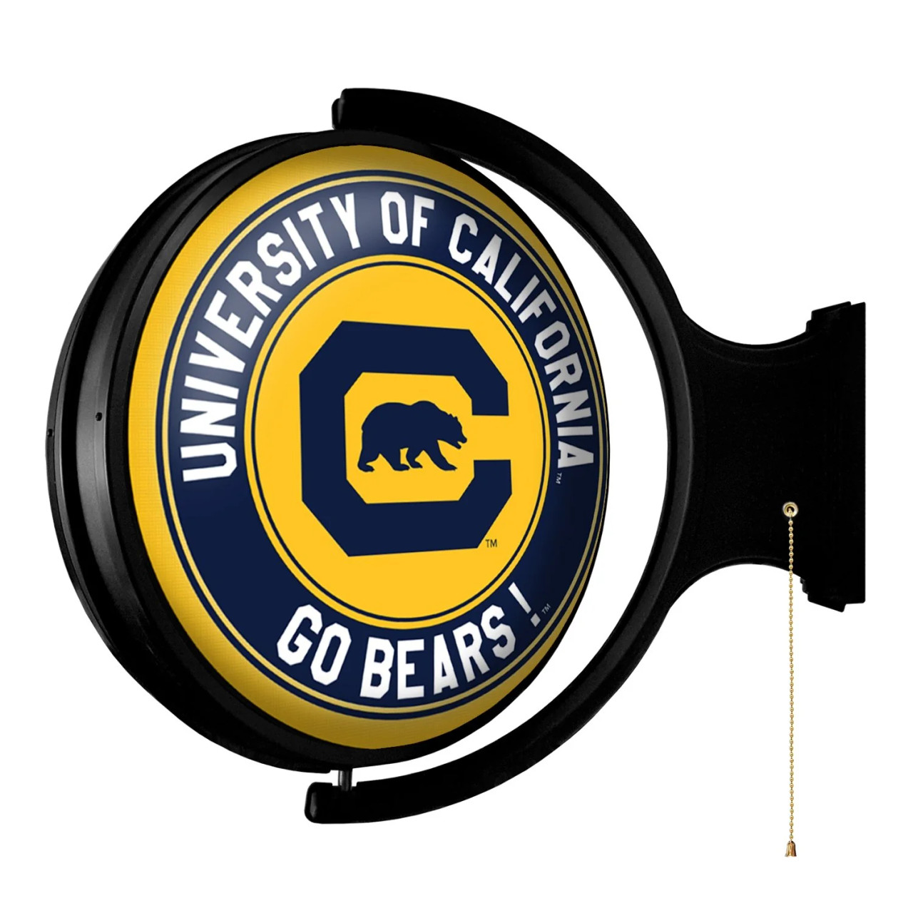 The Original Rotating Lighted Wall Sign both lights up and spins while allowing you to displaying your passion for your team. Whether it's your fan cave, office, game room, or garage, this decorative sign is the perfect addition to any wall. It showcases the latest in LED technology and only uses 12 watts of power. Injection molded, it comes with an 8 foot power cord and a metal pull chain. Mounting hardware included and installation takes no more than 10 minutes. This is an officially licensed product of the Golden Bears and made in the USA.