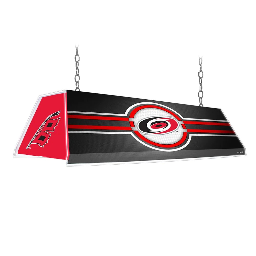 Our new Carolina Hurricanes edge glow pool table light features an ultra-modern design with edge glow corners and a high-resolution, high gloss image. A perfect piece to decorate any fan cave or billiard room, giving it a modern feel and showcasing your team pride. Hanging hardware included. This is an officially licensed product of NHL and made in the USA.