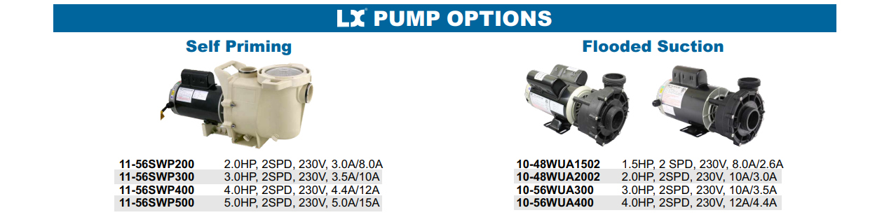 SALE Quick view sku: 11-56SWP300 3 HP 2-Speed 56 Frame w/ 2 inch unions 230V LX Pump with Basket 11-56SWP300 3 HP 2-Speed 56 Frame w/ 2 inch unions 230V LX Pump with Basket 11-56SWP300 FREE SHIPPING View all LX Inground Pool Pumps Description Pump, LX, 56SWP, 3.0HP, 2-Speed, 230V, 3.5A/10A, 56SWP300-II, W/Basket,... MSRP: Was: $569.99 Now: $489.99 Add to Cart Compare