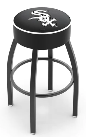 Made for the ultimate MLB sports fan, you will be proud to show where your baseball team loyalty lies with this impressive Officially Licensed stool from the Holland Bar Stool Co. This contemporary L8B1 stool features a single ring black wrinkle base with a 5" scooped cushion that conceals the swivel for an exceptionally clean look. A state-of-the-art print process is used in applying specially formulated UV vinyl ink in numerous stages to produce a sharp, crisp, clear image to ensure a perfect reproduction of the logo. You won't find a higher quality logo stool on the market. The frame is made from commercial quality 16 gauge, 1 1/4 inch tube steel with solid mig welded joints to guarantee strength and durability. The powder coated finish resists chips and scratches and ensures a long-lasting, rich appearance. The cushion seats are of the highest quality as well, utilizing a breathable, commercial grade vinyl. At the heart of the cushion is high density, US made foam, that provides maximum support and will not breakdown in a couple years. If you're going to finish your bar, game room, or man cave do it right- with a major league logo stool made in the USA by the Holland Bar Stool Co.