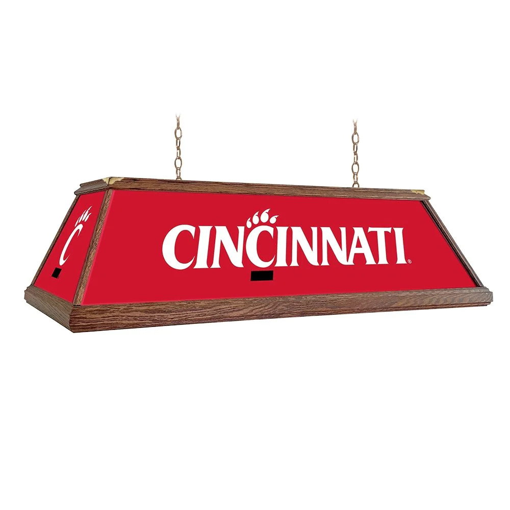 Our premium deluxe wood pool table light will be sure to be the centerpiece of any billiard room or fan cave. Hand crafted and hand stained with real oak wood and featuring a high-resolution, high gloss panels. Hanging hardware included. This is an officially licensed product of the NCAA and made in the USA.