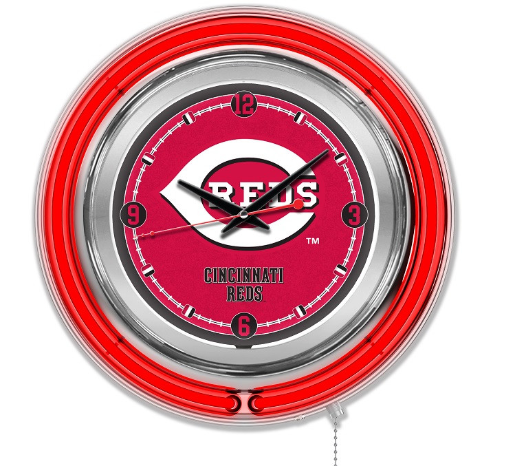Our double neon MLB Baseball Logo Clocks are the perfect way to show your team pride. Featuring a chrome casing and a team color specific neon outer ring that accents the custom printed clock face which is lit up by an brilliant white, inner neon ring. The Neon rings are easily turned on and off with a pull chain on the bottom of the clock, and are powered by a UL Listed power transformer that runs off standard 120V outlet. Accurate quartz movement ensures proper time and is powered by a single, AA battery (not included). Whether purchasing as a gift for a sports super fan, or for yourself, you can take satisfaction knowing you're buying a clock that is proudly made in Holland, MI USA.