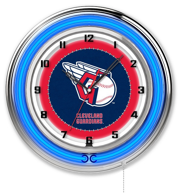 Our double neon MLB Baseball Logo Clocks are the perfect way to show your team pride. Featuring a chrome casing and a team color specific neon outer ring that accents the custom printed clock face which is lit up by a brilliant white, inner neon ring. The Neon rings are easily turned on and off with a pull chain on the bottom of the clock, and are powered by a UL Listed power transformer that runs off standard 120V outlet. Accurate quartz movement ensures proper time and is powered by a single, AA battery (not included). Whether purchasing as a gift for a sports super fan, or for yourself, you can take satisfaction knowing you're buying a clock that is proudly made in Holland, MI USA.