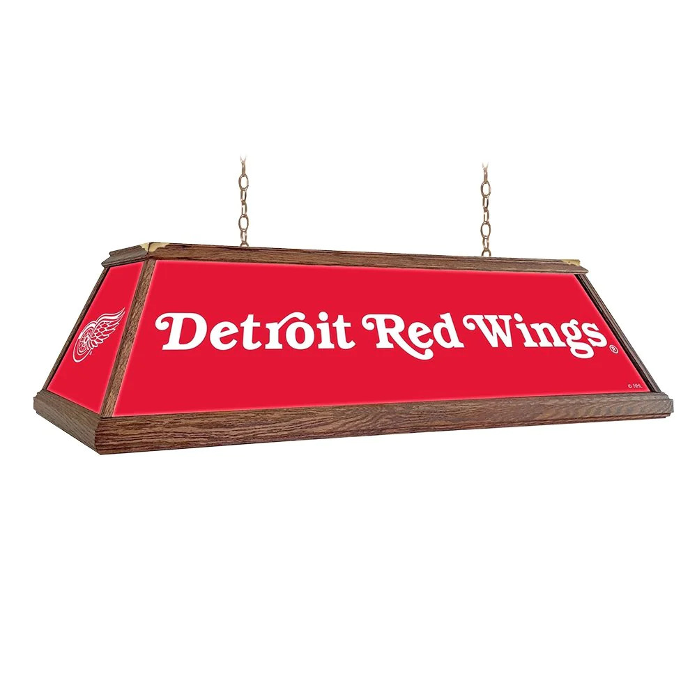 Our Premium Deluxe Wooden Pool Table Light will be sure to be the centerpiece of any billiard room or fan cave. Hand crafted and hand stained with real oak wood and featuring high-resolution, high gloss panels. Hanging hardware included. This is an officially licensed product of NHL and made in the USA.