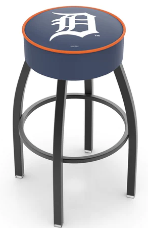 Made for the ultimate MLB sports fan, you will be proud to show where your baseball team loyalty lies with this impressive Officially Licensed stool from the Holland Bar Stool Co. This contemporary L8B1 stool features a single ring black wrinkle base with a 5" scooped cushion that conceals the swivel for an exceptionally clean look. A state-of-the-art print process is used in applying specially formulated UV vinyl ink in numerous stages to produce a sharp, crisp, clear image to ensure a perfect reproduction of the logo. You won't find a higher quality logo stool on the market. The frame is made from commercial quality 16 gauge, 1 1/4 inch tube steel with solid mig welded joints to guarantee strength and durability. The powder coated finish resists chips and scratches and ensures a long-lasting, rich appearance. The cushion seats are of the highest quality as well, utilizing a breathable, commercial grade vinyl. At the heart of the cushion is high density, US made foam, that provides maximum support and will not breakdown in a couple years. If you're going to finish your bar, game room, or man cave do it right- with a major league logo stool made in the USA by the Holland Bar Stool Co.