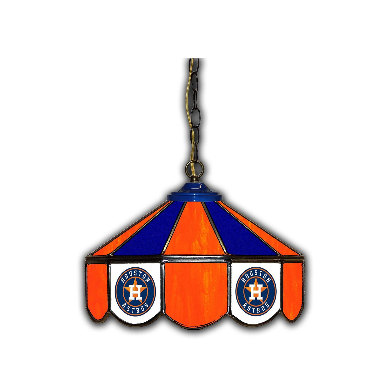 Beautifully handcrafted 14-inch diameter old world Tiffany style stained glass hanging pub light. Each piece of glass is individually cut by hand and individually placed by hand. It is then soldered into its proper position with great care and precision by highly trained artists. Fully wired with 1 UL Approved high quality porcelain light socket and a 12-foot cord with inline switch and polarized plug. 9-feet of heavy duty antique brass chain adds a touch of luxury to the lamp. Handmade in the USA. Chain and ceiling mounting hardware not included. Bulb is not included. Lamp measures 14" wide x 10" high; weighs 12 pounds. Ships small parcel from Illinois. Allow 3-4 weeks for shipping.