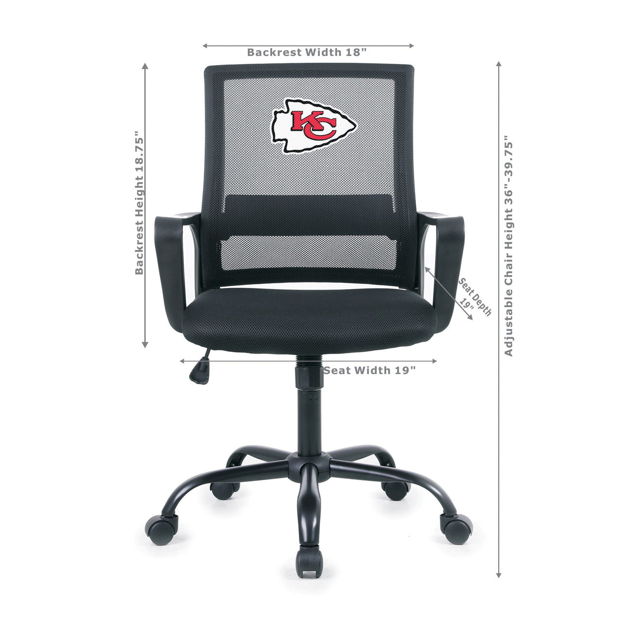 Show Off your favorite team's mesh back office chair everyday at work. Great for your home office or corporate workspace. Seat has mesh fabric for comfort and long hours of work. Sturdy Armrest, butterfly mechanism, solid steel base with castors make this a chair to last. 275 pound weight limit. All materials meet with BIFA standards.