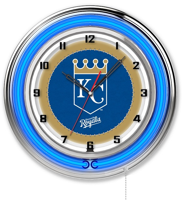 Our double neon MLB Baseball Logo Clocks are the perfect way to show your team pride. Featuring a chrome casing and a team color specific neon outer ring that accents the custom printed clock face which is lit up by a brilliant white, inner neon ring. The Neon rings are easily turned on and off with a pull chain on the bottom of the clock, and are powered by a UL Listed power transformer that runs off standard 120V outlet. Accurate quartz movement ensures proper time and is powered by a single, AA battery (not included). Whether purchasing as a gift for a sports super fan, or for yourself, you can take satisfaction knowing you're buying a clock that is proudly made in Holland, MI USA.