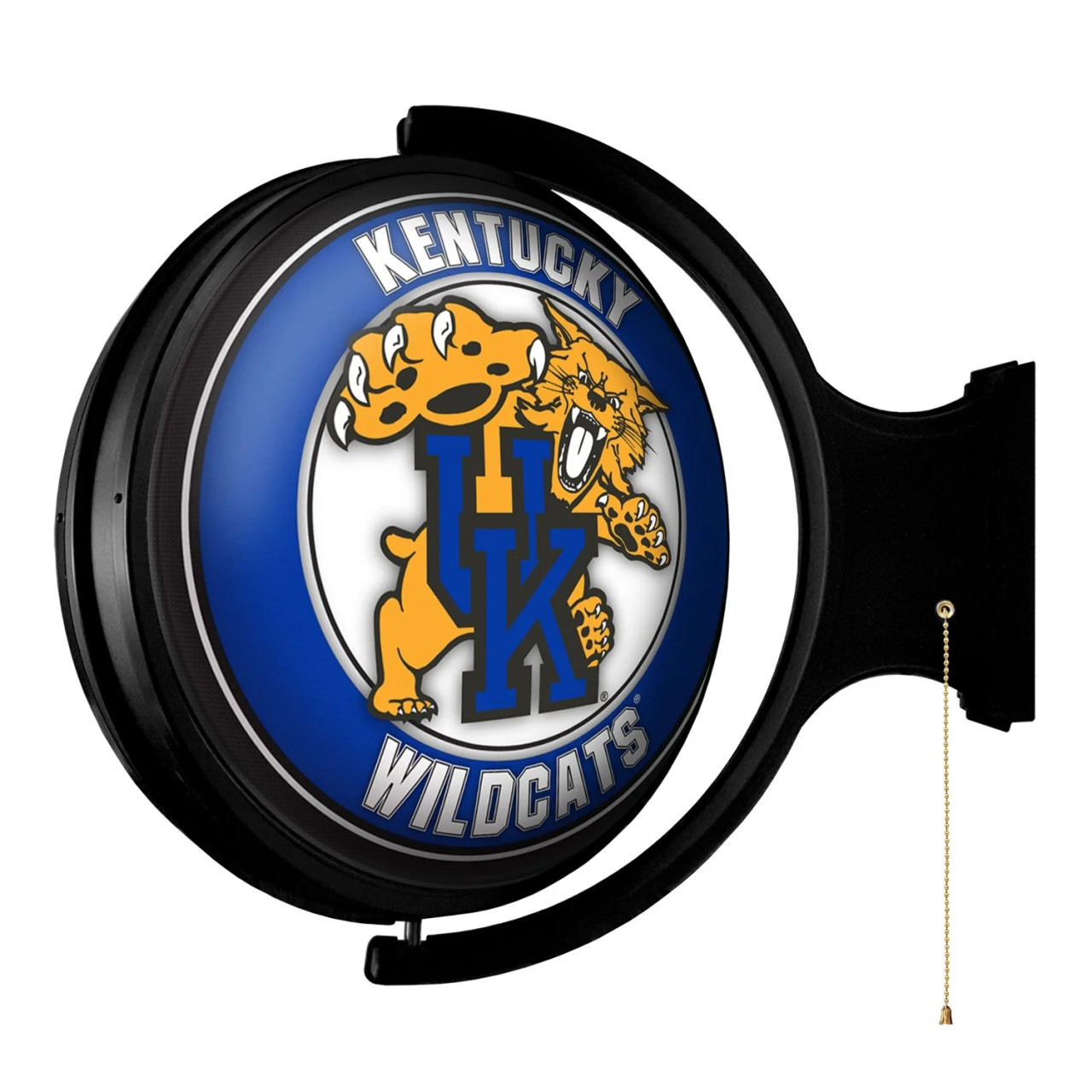 The Original Rotating Lighted Wall Sign both lights up and spins while allowing you to displaying your passion for your team. Whether it's your fan cave, office, game room, or garage, this decorative sign is the perfect addition to any wall. It showcases the latest in LED technology and only uses 12 watts of power. Injection molded, it comes with an 8 foot power cord and a metal pull chain. Mounting hardware included and installation takes no more than 10 minutes. This is an officially licensed product of the Wildcats and made in the USA.