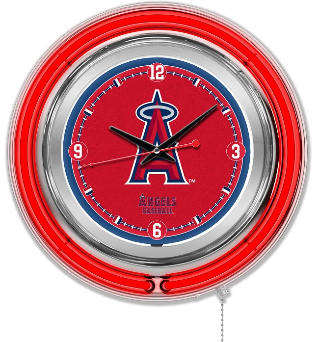 Our double neon MLB Baseball Logo Clocks are the perfect way to show your team pride. Featuring a chrome casing and a team color specific neon outer ring that accents the custom printed clock face which is lit up by an brilliant white, inner neon ring. The Neon rings are easily turned on and off with a pull chain on the bottom of the clock, and are powered by a UL Listed power transformer that runs off standard 120V outlet. Accurate quartz movement ensures proper time and is powered by a single, AA battery (not included). Whether purchasing as a gift for a sports super fan, or for yourself, you can take satisfaction knowing you're buying a clock that is proudly made in Holland, MI USA.