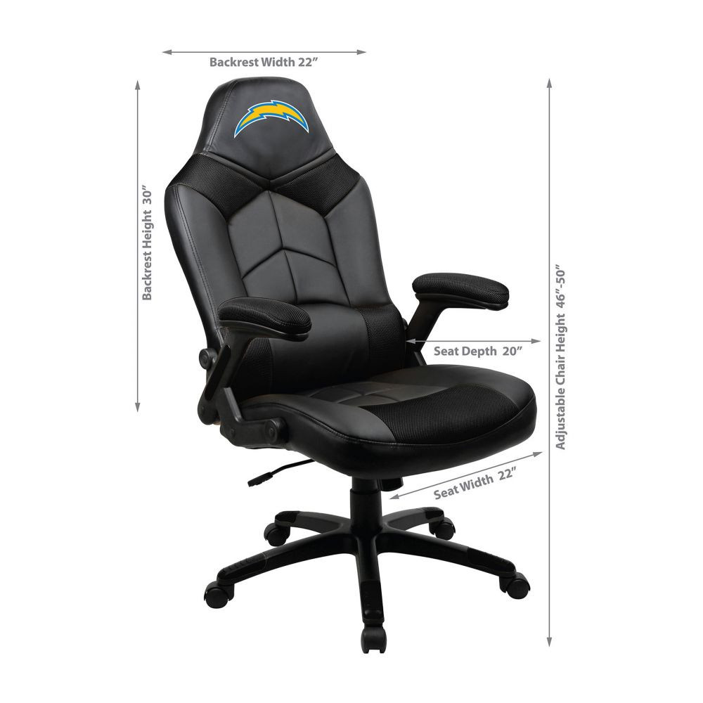 Support Los Angeles Chargers While Sitting At Your Desk, Playing Your Favorite Online Game, Listening To Your Favorite Music, Or Just Watching Tv In Your Officially Licensed Nfl Oversized Gaming Chair! This Chair Has An Oversized Seat And Back For Extra Comfort. Embroidered Team Logo On The Headrest And Pouch. Memory Foam In The Seat And Padded Armrests Make This The Most Comfortable Gaming Chair You Can Buy. Unique Pouch Allows You To Keep Gaming Accessories Handy And Protected. 350mm Black Powder Coated Nylon Base And Butterfly Tilt Mechanism. 325 Pound Weight Capacity. Product Dimensions: 26x 29 1/2 X 49 ; Weighs 37 Pounds