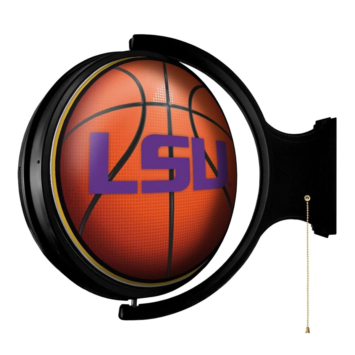 The Original Basketball Rotating Lighted Wall Sign both lights up and spins while allowing you to display your passion for your favorite team. Whether it's your fan cave, office, game room, or garage, this decorative rotating sign is the perfect addition to any wall. It showcases the latest in LED technology and only uses 12 watts of power. Injection molded, it comes with an 8' power cord and a metal pull chain. Mounting hardware included and installation takes no more than 10 minutes. This is an officially licensed product of the NCAA and made in the USA.