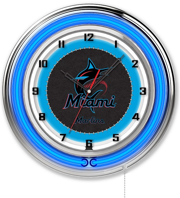 Our double neon MLB Baseball Logo Clocks are the perfect way to show your team pride. Featuring a chrome casing and a team color specific neon outer ring that accents the custom printed clock face which is lit up by a brilliant white, inner neon ring. The Neon rings are easily turned on and off with a pull chain on the bottom of the clock, and are powered by a UL Listed power transformer that runs off standard 120V outlet. Accurate quartz movement ensures proper time and is powered by a single, AA battery (not included). Whether purchasing as a gift for a sports super fan, or for yourself, you can take satisfaction knowing you're buying a clock that is proudly made in Holland, MI USA.