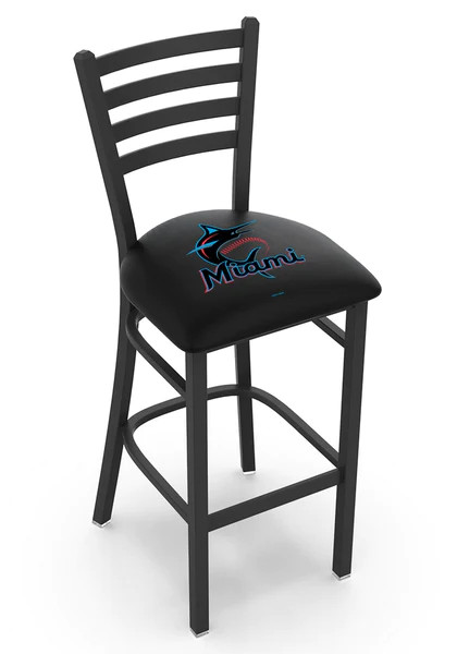 Made for the ultimate sports fan, you will be proud to show where your loyalty lies with this impressive Officially Licensed stool from the Holland Bar Stool Co. This L004 25" or 30" logo stationary stool has a defined Ladder-Back style that doesn't just add comfort, but sophistication. A state-of-the-art print process is used in applying specially formulated UV vinyl ink in numerous stages to produce a sharp, crisp, clear image to ensure a perfect reproduction of the logo. You won't find a higher quality logo stool on the market. The frame is made from commercial quality 16 gauge, 1-1/4-inch tube steel with solid mig welded joints to guarantee strength and durability. The powder coated finish resists chips and scratches and ensures a long-lasting, rich appearance. The cushion seats are of the highest quality as well, utilizing a breathable, commercial grade vinyl. At the heart of the cushion is 2 1/2 inches of highly dense, US made foam that provides maximum support and will not breakdown in a couple years. If you're going to finish your bar, game room, or man cave do it right- with a logo stool made in the USA by the Holland Bar Stool Co.