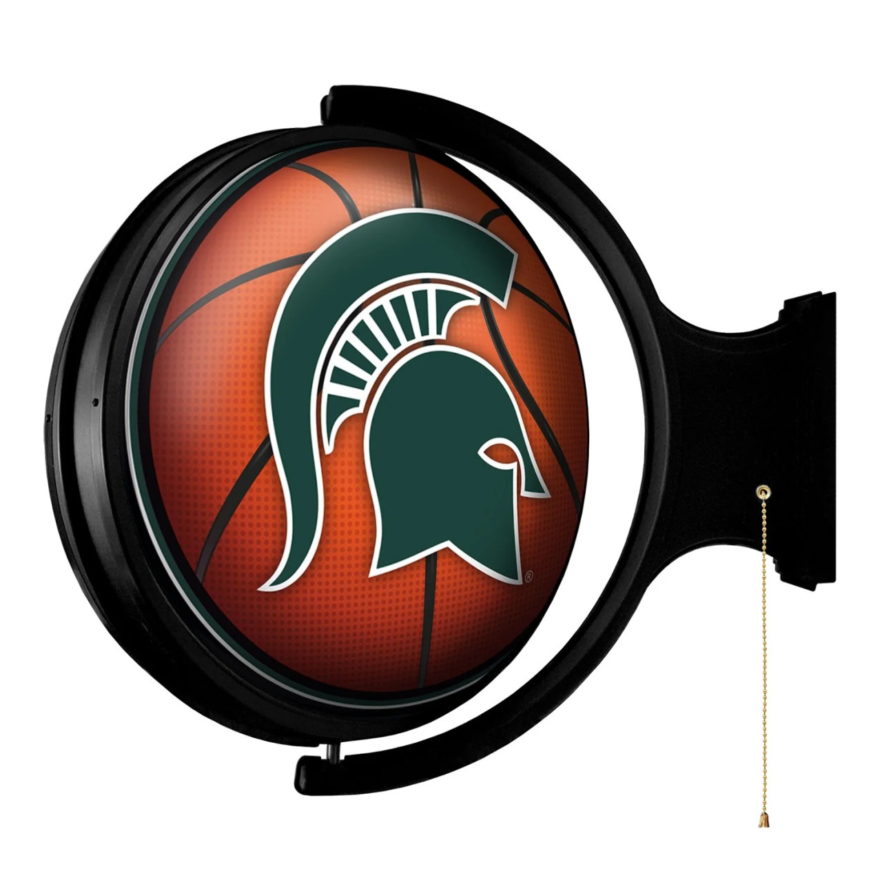 The Original Basketball Rotating Lighted Wall Sign both lights up and spins while allowing you to display your passion for your favorite team. Whether it's your fan cave, office, game room, or garage, this decorative rotating sign is the perfect addition to any wall. It showcases the latest in LED technology and only uses 12 watts of power. Injection molded, it comes with an 8' power cord and a metal pull chain. Mounting hardware included and installation takes no more than 10 minutes. This is an officially licensed product of the NCAA and made in the USA.