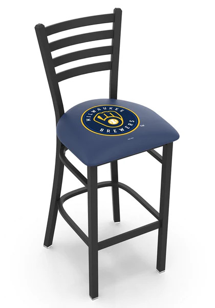 Made for the ultimate sports fan, you will be proud to show where your loyalty lies with this impressive Officially Licensed stool from the Holland Bar Stool Co. This L004 25" or 30" logo stationary stool has a defined Ladder-Back style that doesn't just add comfort, but sophistication. A state-of-the-art print process is used in applying specially formulated UV vinyl ink in numerous stages to produce a sharp, crisp, clear image to ensure a perfect reproduction of the logo. You won't find a higher quality logo stool on the market. The frame is made from commercial quality 16 gauge, 1-1/4-inch tube steel with solid mig welded joints to guarantee strength and durability. The powder coated finish resists chips and scratches and ensures a long-lasting, rich appearance. The cushion seats are of the highest quality as well, utilizing a breathable, commercial grade vinyl. At the heart of the cushion is 2 1/2 inches of highly dense, US made foam that provides maximum support and will not breakdown in a couple years. If you're going to finish your bar, game room, or man cave do it right- with a logo stool made in the USA by the Holland Bar Stool Co.