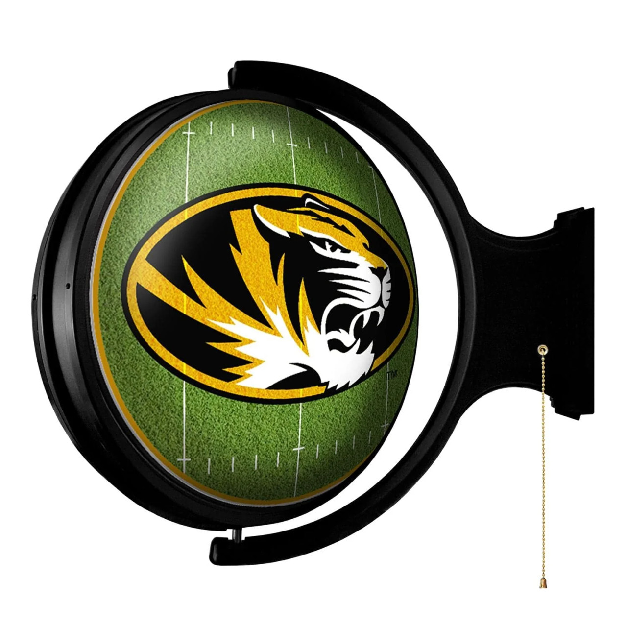 Our Football "On the 50" Rotating Lighted Wall Sign both lights up and spins while allowing you to display your passion for your favorite team. Whether it's your fan cave, office, game room, or garage, this decorative football field design makes a great addition to any wall and is sure to get you ready for gamedays. It showcases the latest in LED technology and only uses 12 watts of power. Injection molded, it comes with an 8 foot power cord and a metal pull chain. Mounting hardware included and installation takes no more than 10 minutes. This is an officially licensed product of the NCAA and is made in the USA.