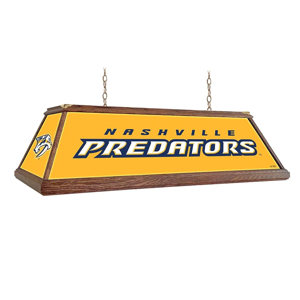 Our Premium Deluxe Wooden Pool Table Light will be sure to be the centerpiece of any billiard room or fan cave. Hand crafted and hand stained with real oak wood and featuring high-resolution, high gloss panels. Hanging hardware included. This is an officially licensed product of NHL and made in the USA.