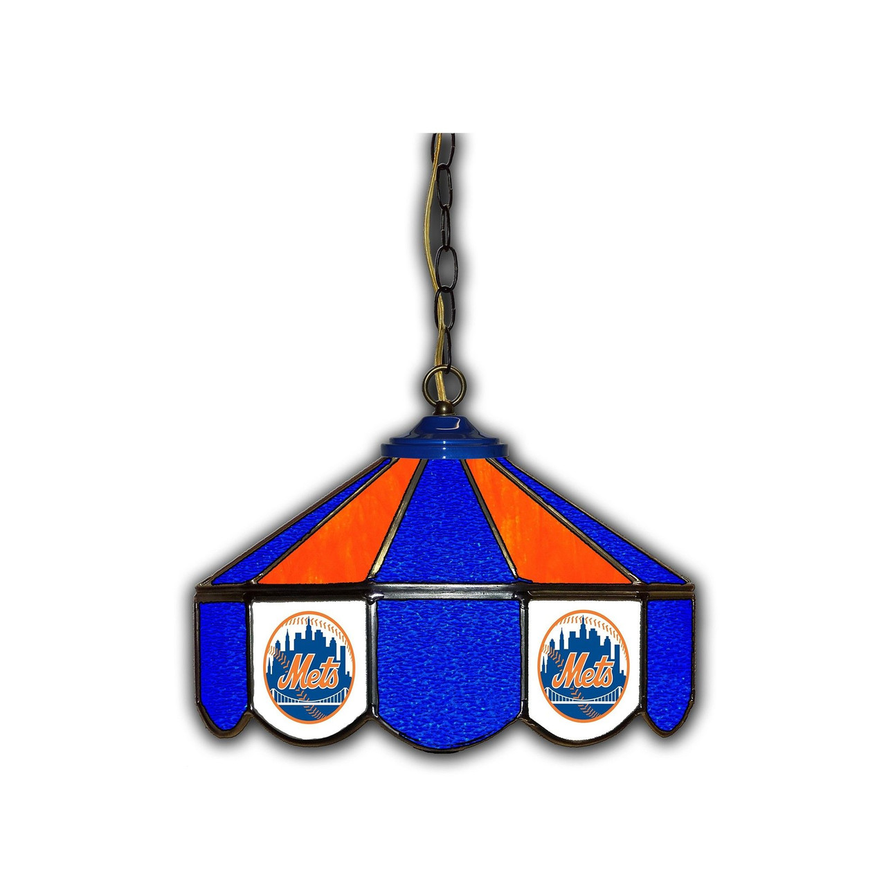 Beautifully handcrafted 14-inch diameter old world Tiffany style stained glass hanging pub light. Each piece of glass is individually cut by hand and individually placed by hand. It is then soldered into its proper position with great care and precision by highly trained artists. Fully wired with 1 UL Approved high quality porcelain light socket and a 12-foot cord with inline switch and polarized plug. 9-feet of heavy duty antique brass chain adds a touch of luxury to the lamp. Handmade in the USA. Chain and ceiling mounting hardware not included. Bulb is not included. Lamp measures 14" wide x 10" high; weighs 12 pounds. Ships small parcel from Illinois. Allow 3-4 weeks for shipping.