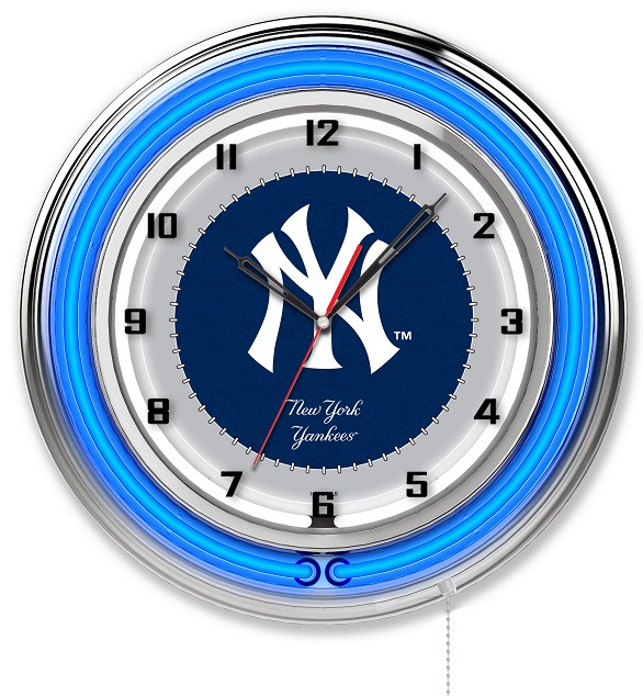 Our double neon MLB Baseball Logo Clocks are the perfect way to show your team pride. Featuring a chrome casing and a team color specific neon outer ring that accents the custom printed clock face which is lit up by a brilliant white, inner neon ring. The Neon rings are easily turned on and off with a pull chain on the bottom of the clock, and are powered by a UL Listed power transformer that runs off standard 120V outlet. Accurate quartz movement ensures proper time and is powered by a single, AA battery (not included). Whether purchasing as a gift for a sports super fan, or for yourself, you can take satisfaction knowing you're buying a clock that is proudly made in Holland, MI USA.