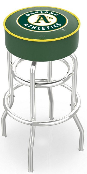 Made for the ultimate MLB sports fan, you will be proud to show where your loyalty lies with this impressive Officially Licensed Major League Baseball stool from the Holland Bar Stool Co. This L7C1 double ring swivel stool has a style that brings you back in time. A state of the art print process is used in applying specially formulated UV vinyl ink in numerous stages to produce a sharp, crisp, clear image to ensure a perfect reproduction of the logo. You won't find a higher quality logo stool on the market. The frame is made from commercial grade steel that is strong, durable, and triple chrome-plated to guarantee a long-lasting, rich finish capable of withstanding the abuse of your rowdiest of friends for years to come. The cushion seats are of the highest quality as well, utilizing a breathable, commercial grade vinyl. At the heart of the cushion is highly-dense, US made foam that provides maximum support and will not breakdown in a couple years. If you're going to finish your bar, game room, or man cave do it right- with a logo stool made in the USA by the Holland Bar Stool Co.