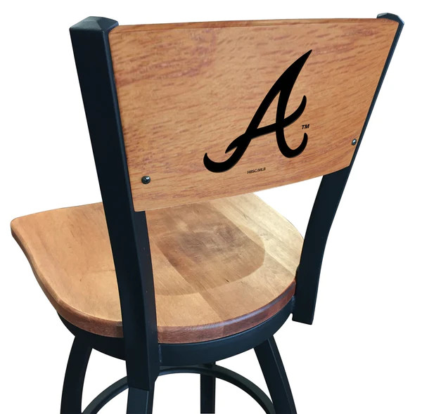Made for the ultimate sports fan, you will be proud to show where your loyalty lies with this impressive Officially Licensed stool from the Holland Bar Stool Co. Add a touch of class with this L038 Laser Engraved, swivel logo stool that has a medium finished Maple wood back that doesn't just add comfort, but adds sophistication. The back is first laser engraved with your teams logo on state of the art equipment and then finished and sealed to ensure the best quality product possible. You won't find a higher quality logo stool on the market. The frame is made from commercial quality 16 gauge, 1 1/4 inch tube steel with solid mig welded joints to guarantee strength and durability. The powder coated finish resists chips and scratches and ensures a long-lasting, rich appearance. If you're going to finish your bar, game room, or man cave do it right- with a logo stool made in the USA by the Holland Bar Stool Co.