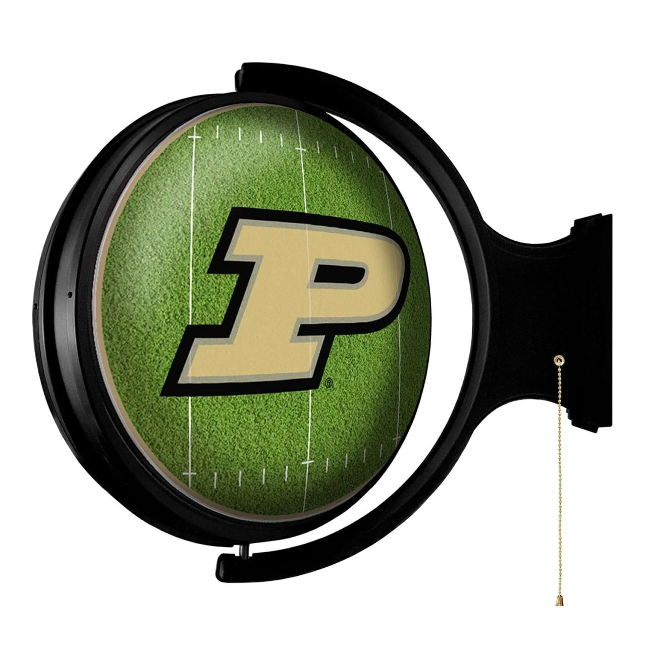 Our Football "On the 50" Rotating Lighted Wall Sign both lights up and spins while allowing you to display your passion for your favorite team. Whether it's your fan cave, office, game room, or garage, this decorative football field design makes a great addition to any wall and is sure to get you ready for gamedays. It showcases the latest in LED technology and only uses 12 watts of power. Injection molded, it comes with an 8 foot power cord and a metal pull chain. Mounting hardware included and installation takes no more than 10 minutes. This is an officially licensed product of the NCAA and is made in the USA.