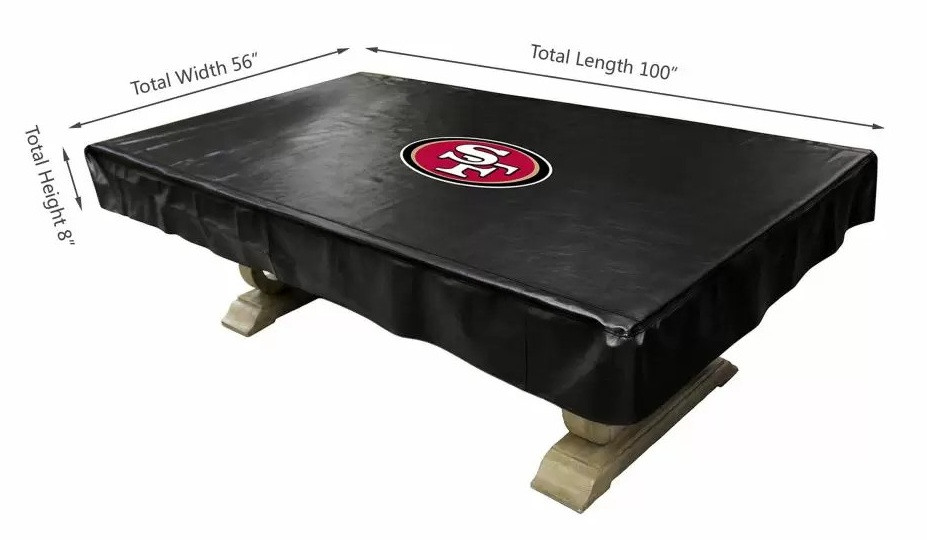 Show your team spirit even when you’re not playing. The NFL Official Licensed Billiard Table Cover is a great way to show your loyalty to your team while protecting your table from dirt. This high quality Naugahyde cover covers fits most standard 8-foot tables. Measures 56-inches wide x 100-inches long. Team logos are silk screened in the center using vibrant inks to make sure your team's logo looks great for many years.