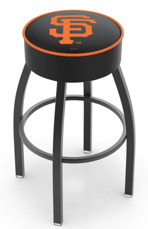Made for the ultimate MLB sports fan, you will be proud to show where your baseball team loyalty lies with this impressive Officially Licensed stool from the Holland Bar Stool Co. This contemporary L8B1 stool features a single ring black wrinkle base with a 5" scooped cushion that conceals the swivel for an exceptionally clean look. A state-of-the-art print process is used in applying specially formulated UV vinyl ink in numerous stages to produce a sharp, crisp, clear image to ensure a perfect reproduction of the logo. You won't find a higher quality logo stool on the market. The frame is made from commercial quality 16 gauge, 1 1/4 inch tube steel with solid mig welded joints to guarantee strength and durability. The powder coated finish resists chips and scratches and ensures a long-lasting, rich appearance. The cushion seats are of the highest quality as well, utilizing a breathable, commercial grade vinyl. At the heart of the cushion is high density, US made foam, that provides maximum support and will not breakdown in a couple years. If you're going to finish your bar, game room, or man cave do it right- with a major league logo stool made in the USA by the Holland Bar Stool Co.