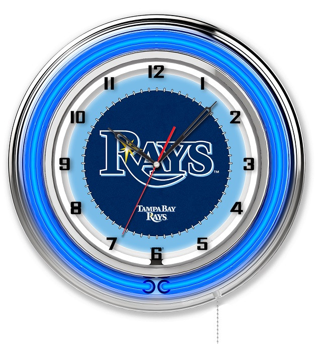 Our double neon MLB Baseball Logo Clocks are the perfect way to show your team pride. Featuring a chrome casing and a team color specific neon outer ring that accents the custom printed clock face which is lit up by a brilliant white, inner neon ring. The Neon rings are easily turned on and off with a pull chain on the bottom of the clock, and are powered by a UL Listed power transformer that runs off standard 120V outlet. Accurate quartz movement ensures proper time and is powered by a single, AA battery (not included). Whether purchasing as a gift for a sports super fan, or for yourself, you can take satisfaction knowing you're buying a clock that is proudly made in Holland, MI USA.