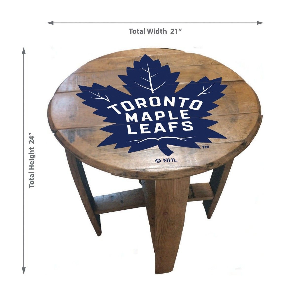Spruce Up Your Living Room Or Fan Cave With This Officially Licensed Custom Made Oak Barrel Table From Imperial! Made From An Authentic Kentucky Oak Charred Whiskey Barrel, This Rustic-Style Table Is One Of A Kind And Looks Great In Any Room. The Team Logo Is Applied By Injecting Uv Resistant Ink Into The Oak And Then Sealing. The Table Measures 21 Inches In Diameter And Is 24 Inches High. This Product Is Officially Licensed By The NHL And Is Made In The USA.