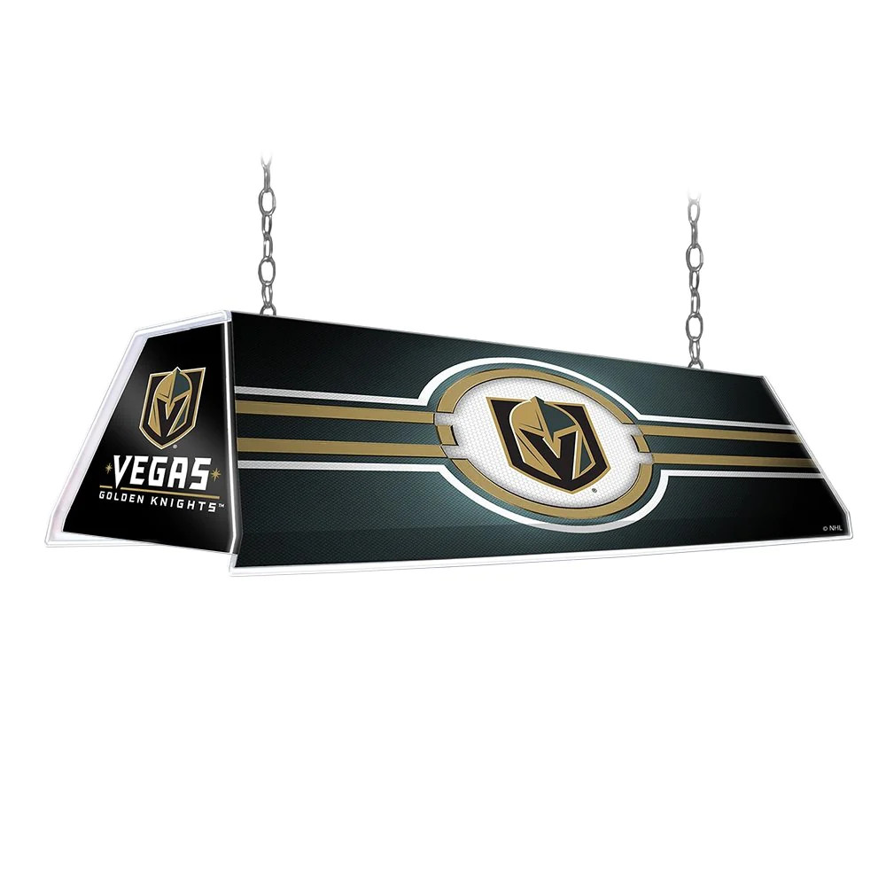 Our new Vegas Golden Knights edge glow pool table light features an ultra-modern design with edge glow corners and a high-resolution, high gloss image. A perfect piece to decorate any fan cave or billiard room, giving it a modern feel and showcasing your team pride. Hanging hardware included. This is an officially licensed product of NHL and made in the USA.