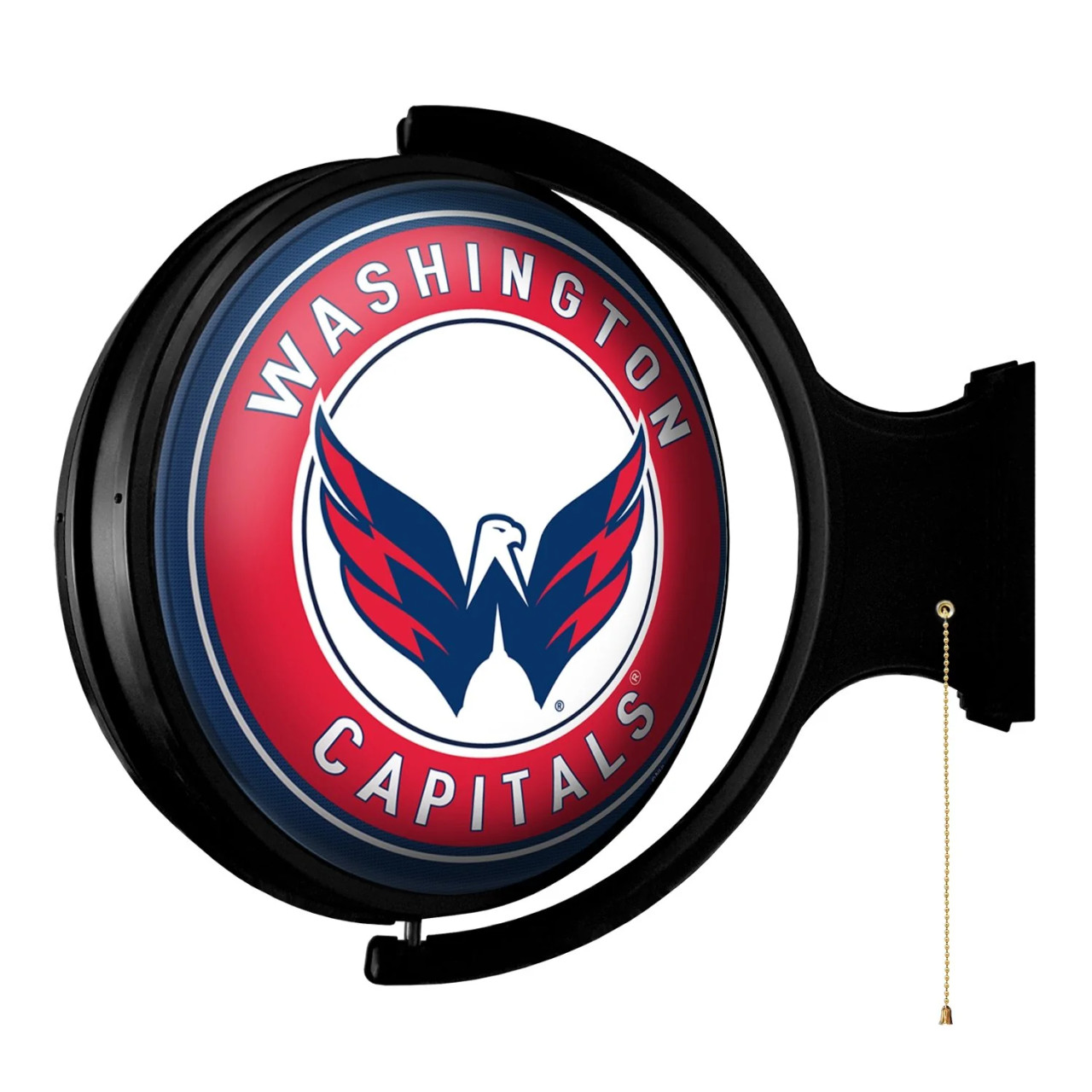 The Original Rotating Lighted Wall Sign both lights up and spins while displaying your team pride. Whether it's your fan cave, office, game room, garage, or dorm, this decorative sign is the perfect addition to any wall. It showcases the latest in LED technology and only uses 12 watts of power. Injection molded, it comes with an 8’ power cord and a metal pull chain. Mounting hardware included and installation takes no more than 10 minutes. This is an officially licensed product of NHL and made in the USA.
