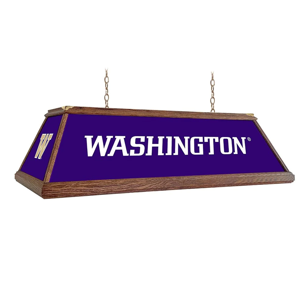 Our premium deluxe wood pool table light will be sure to be the centerpiece of any billiard room or fan cave. Hand crafted and hand stained with real oak wood and featuring a high-resolution, high gloss panels. Hanging hardware included. This is an officially licensed product of the NCAA and made in the USA.
