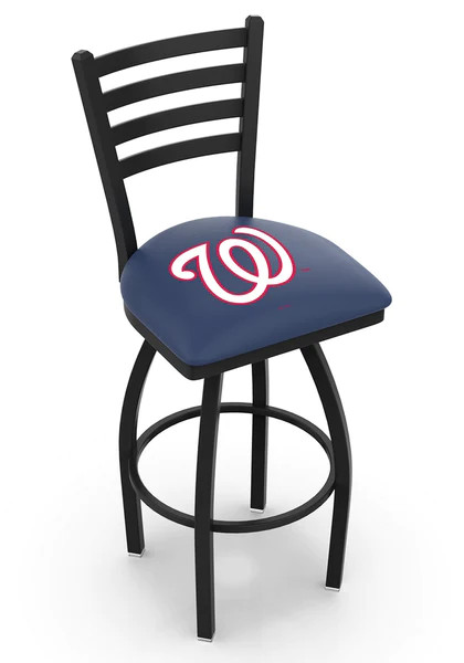 Made for the ultimate MLB sports fan, you will be proud to show where your loyalty lies with this impressive Officially Licensed Major League Baseball stool from the Holland Bar Stool Co. This L014 swivel logo stool has a defined Ladder Back style that doesn't just add comfort, but sophistication. A state of the art print process is used in applying specially formulated UV vinyl ink in numerous stages to produce a sharp, crisp, clear image to ensure a perfect reproduction of the logo. You won't find a higher quality logo stool on the market. The frame is made from commercial quality 16 gauge, 1 1/4 inch tube steel with solid mig welded joints to guarantee strength and durability. The powder coated finish resists chips and scratches and ensures a long-lasting, rich appearance. The cushion seats are of the highest quality as well, utilizing a breathable, commercial grade vinyl. At the heart of the cushion is 2 1/2 inches of highly-dense, US made foam that provides maximum support and will not breakdown in a couple years. If you're going to finish your bar, game room, or man cave do it right- with a logo stool made in the USA by the Holland Bar Stool Co.