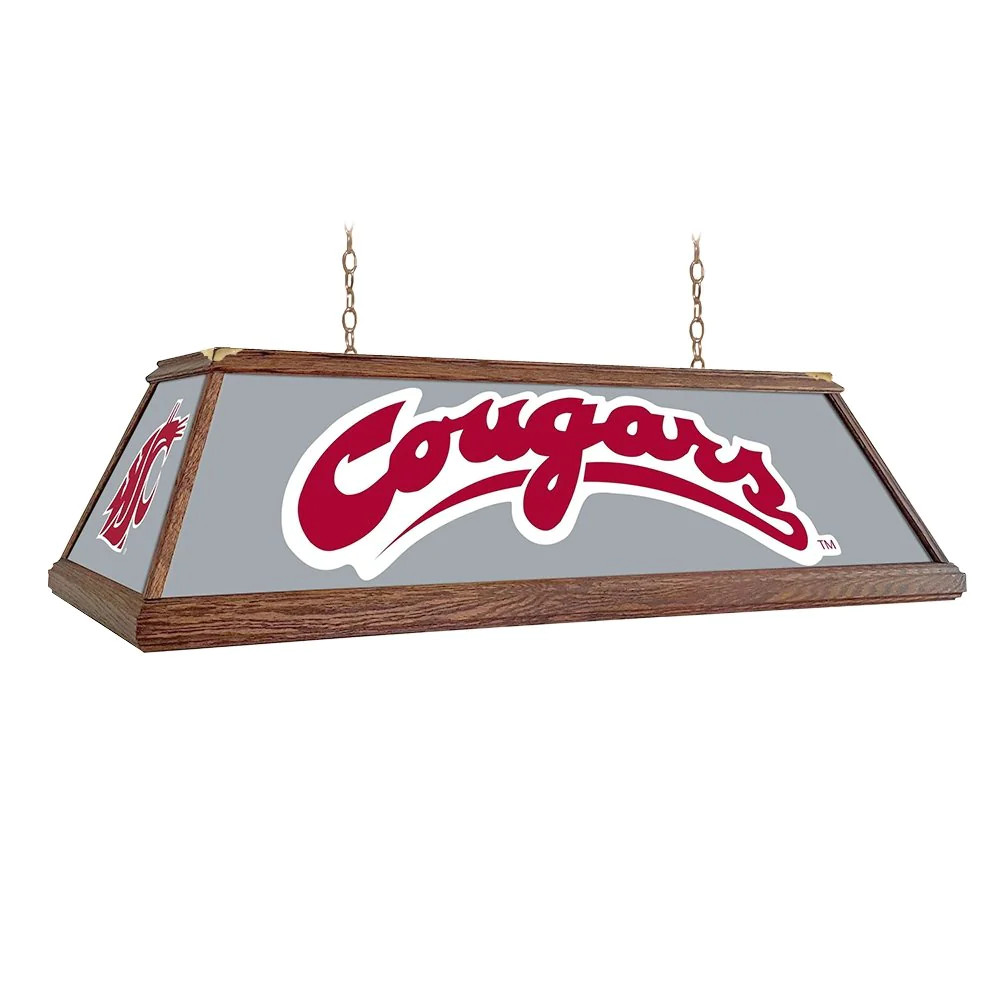 Our premium deluxe wood pool table light will be sure to be the centerpiece of any billiard room or fan cave. Hand crafted and hand stained with real oak wood and featuring a high-resolution, high gloss panels. Hanging hardware included. This is an officially licensed product of the NCAA and made in the USA.