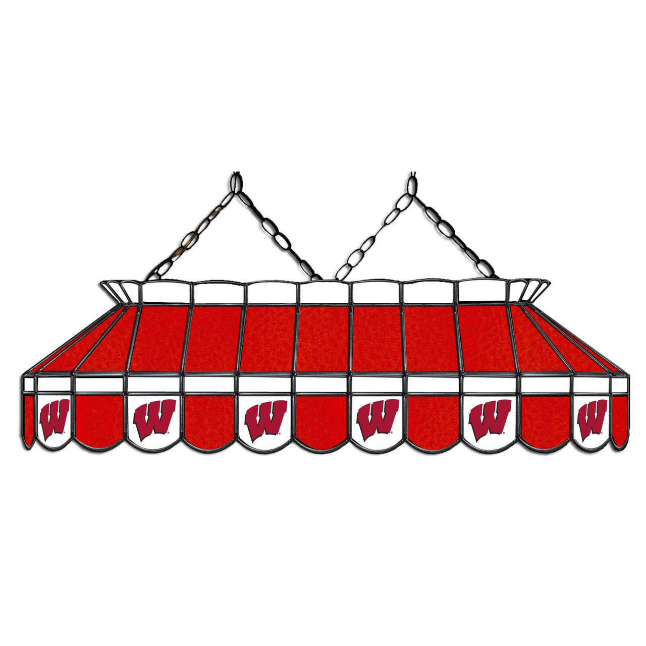 Light up your pool table and show off your team spirit with the NCAA Official Licensed 40-inch Rectangular Stained Glass Pool Table Light. Real stained glass that matches your favorite team's colors. Each piece of glass is hand cut and soldered into its proper place with care and precision. Team logos are screen-printed directly onto the glass. There are 14 logos per lamp. Includes hanging chain, ceiling mounting plate, and installation instructions.
