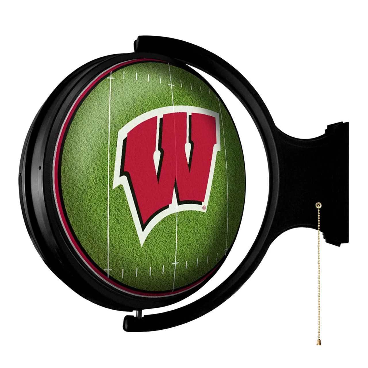 Our Football "On the 50" Rotating Lighted Wall Sign both lights up and spins while allowing you to display your passion for your favorite team. Whether it's your fan cave, office, game room, or garage, this decorative football field design makes a great addition to any wall and is sure to get you ready for gamedays. It showcases the latest in LED technology and only uses 12 watts of power. Injection molded, it comes with an 8 foot power cord and a metal pull chain. Mounting hardware included and installation takes no more than 10 minutes. This is an officially licensed product of the NCAA and is made in the USA.